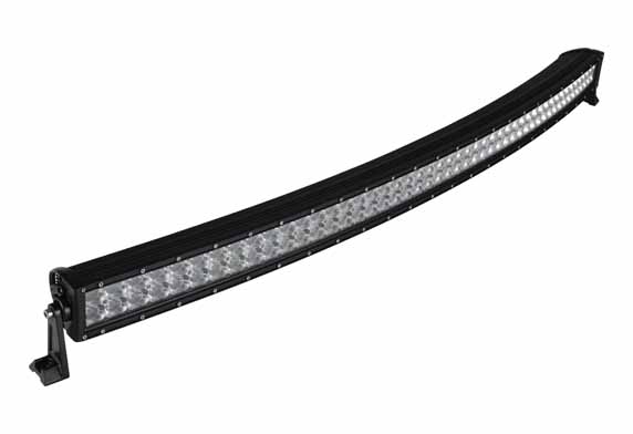 288 Watt 50in Off Road LED light bar with 96 x 3 Watt high power CREE LEDs in a curved dual row array. IP67 waterproof light with 10-30V DC operating voltage range. Black painted aluminum housing with integral heatsink and polycarbonate lens.